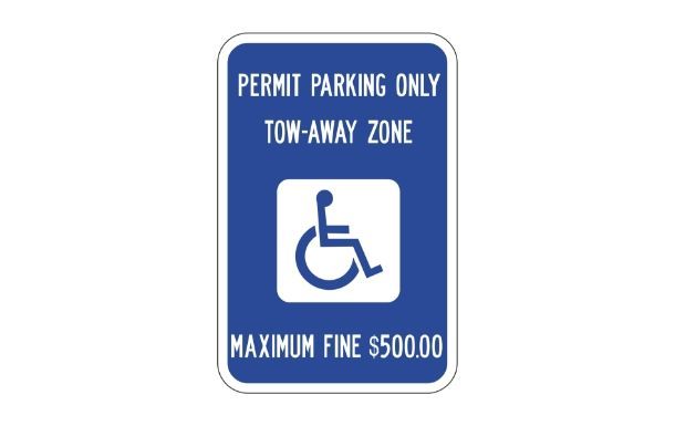 This sign is designed to mark parking stalls that require a valid permit for use. The standard version includes white text on a blue background, the wheelchair symbol, a “Tow Away Zone” warning, and the applicable maximum fine, all in line with ADA guidelines. For non-ADA applications, these elements can be customized, including alternate text, colors, or removal of the wheelchair symbol. Made from durable aluminum and coated with Engineer Grade reflective sheeting.